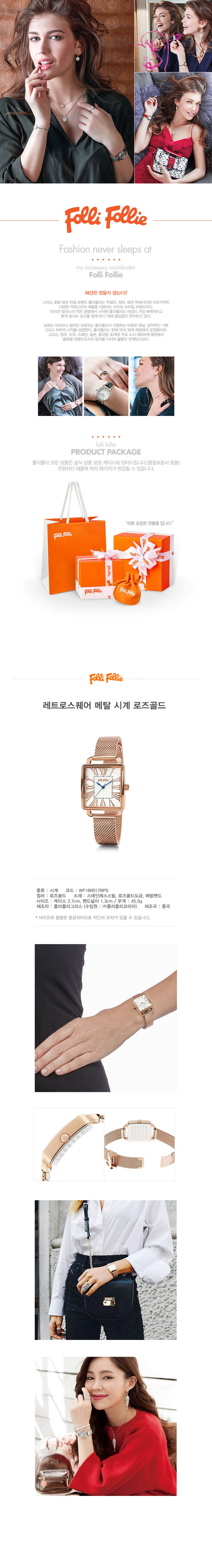 폴리폴리 레트로 스퀘어 메탈 시계 로즈골드 WF16R012BPS