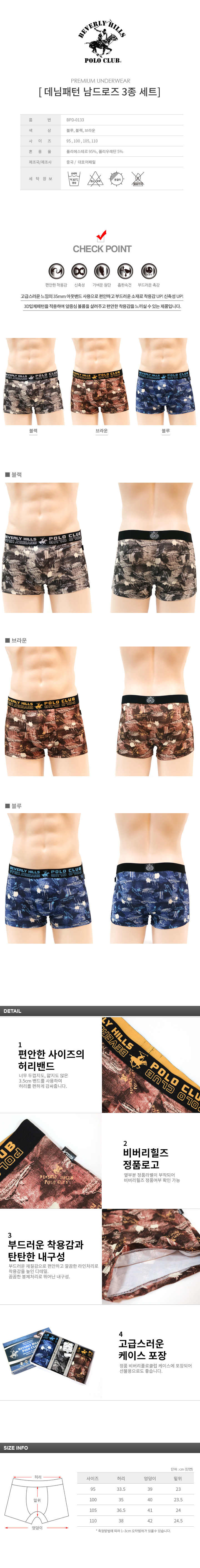 [비버리힐즈폴로클럽]데님패턴 남드로즈 3종세트BPD-0133