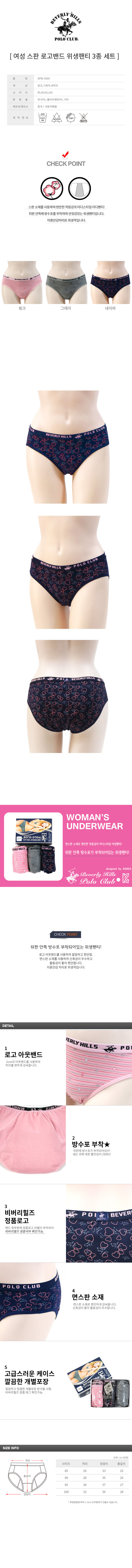 [비버리힐즈폴로클럽]여성 스판 로고밴드 위생팬티 3종세트BPW-3009