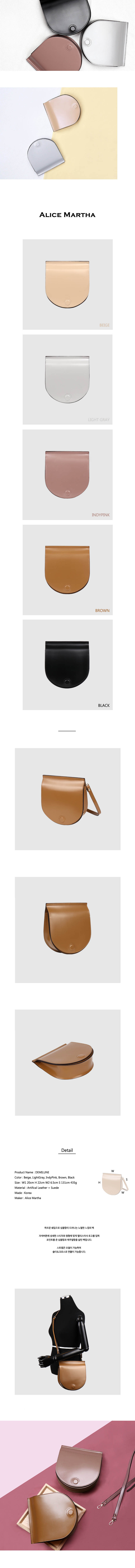 하프문 쉐입으로 심플함이 드러나는 노멀한 느낌의 백/자석버튼에 섬세한 스티치와 원형에 맞게 앨리스마샤 로고를 입혀 포인트를 준 심플함과 캐주얼함을 살린 백.