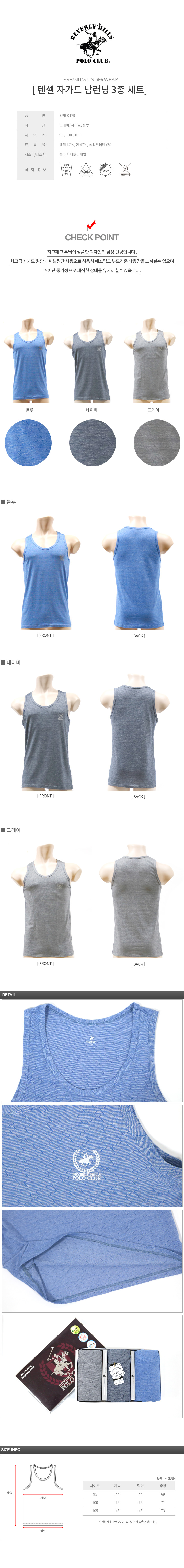 [비버리힐즈폴로클럽]텐셀 자가드 남런닝 3종세트 BPR-0179