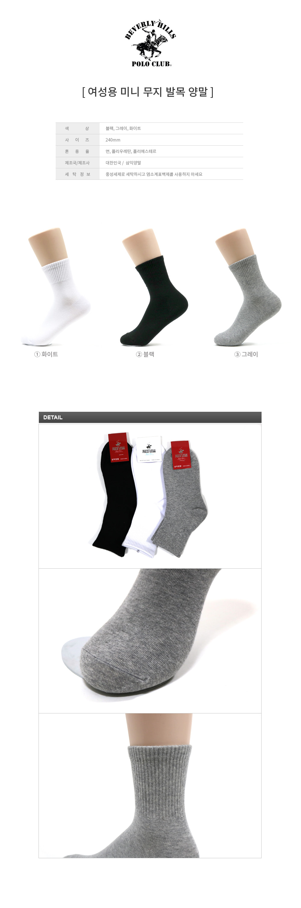 [비버리힐즈폴로클럽]여성용 미니 무지 발목양말 1묶음 10켤레 socks-9009