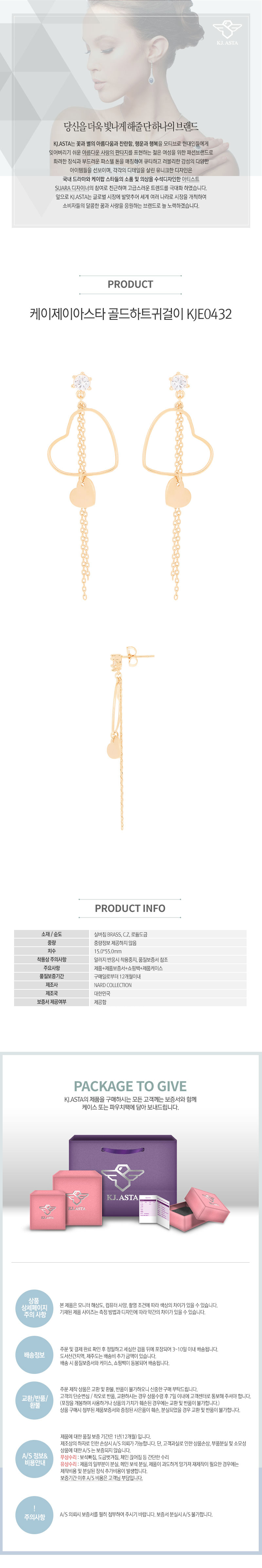 케이제이아스타 골드하트귀걸이 KJE0432