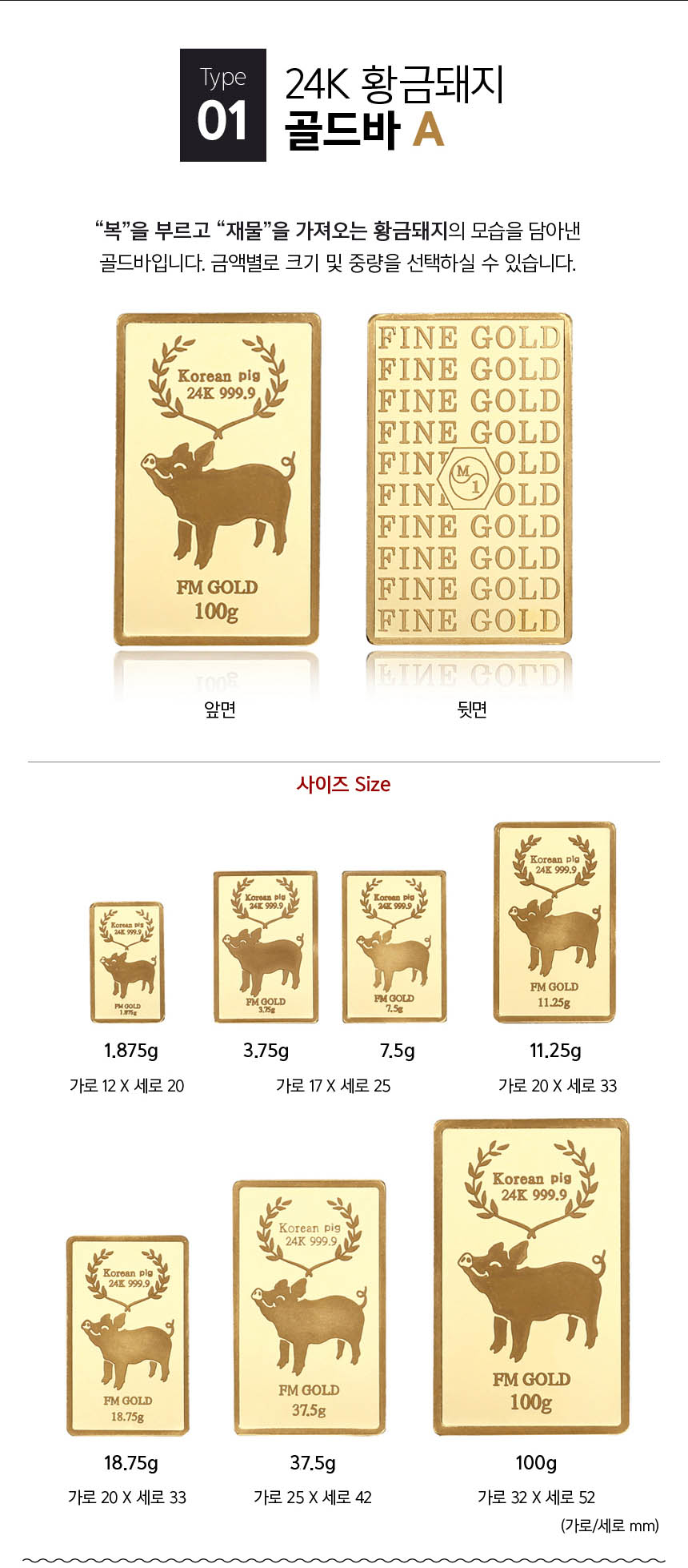 2019황금돼지띠 24K순금 골드바(18.75g)/999.9%