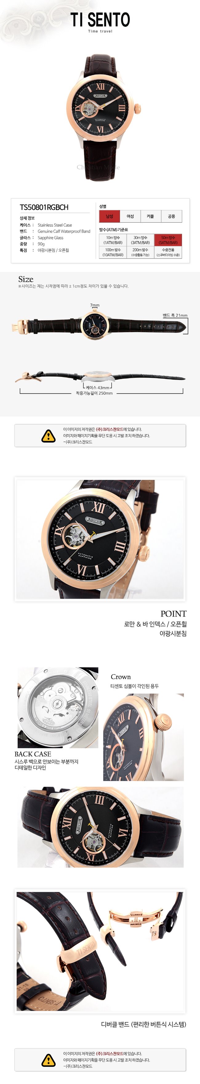 [티센토]재팬무브먼트티센토 오토매틱 남성가죽 TS50801RGBCH