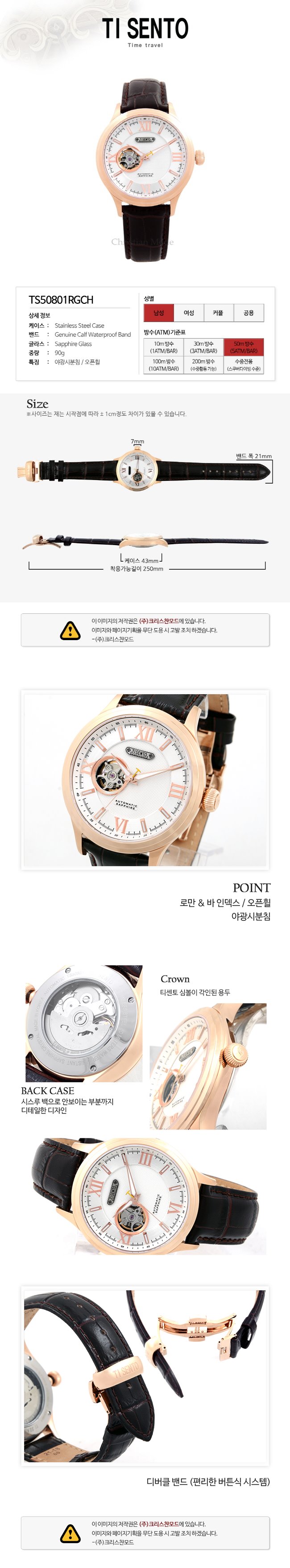 [티센토]재팬무브먼트 티센토 오토매틱 남성가죽 TS50801RGCH