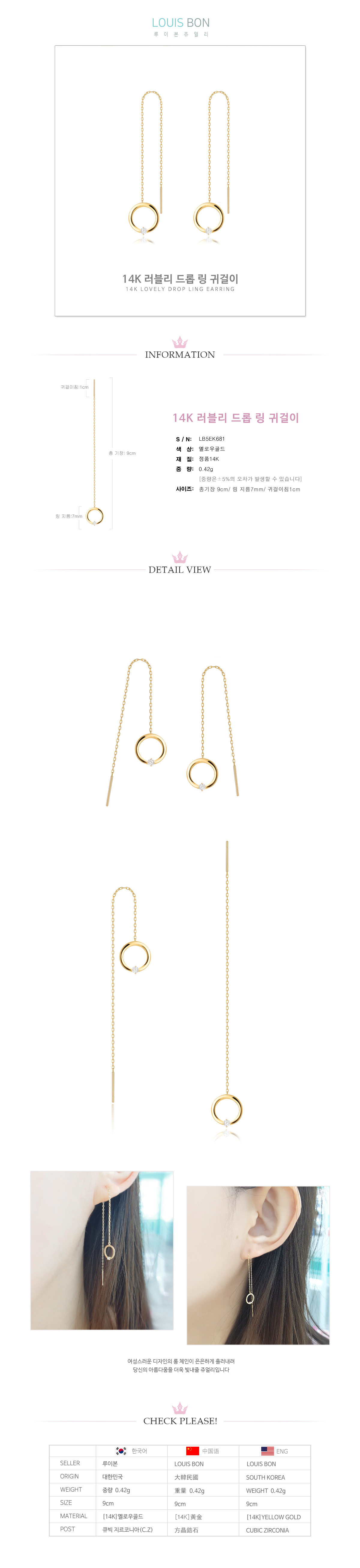 [루이본]러블리드롭링귀걸이 LB5EK681