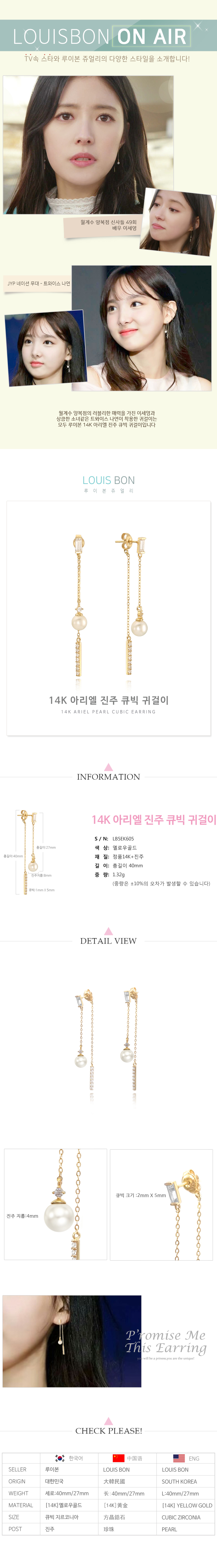 [루이본]아리엘진주큐빅귀걸이 LB5EK605
