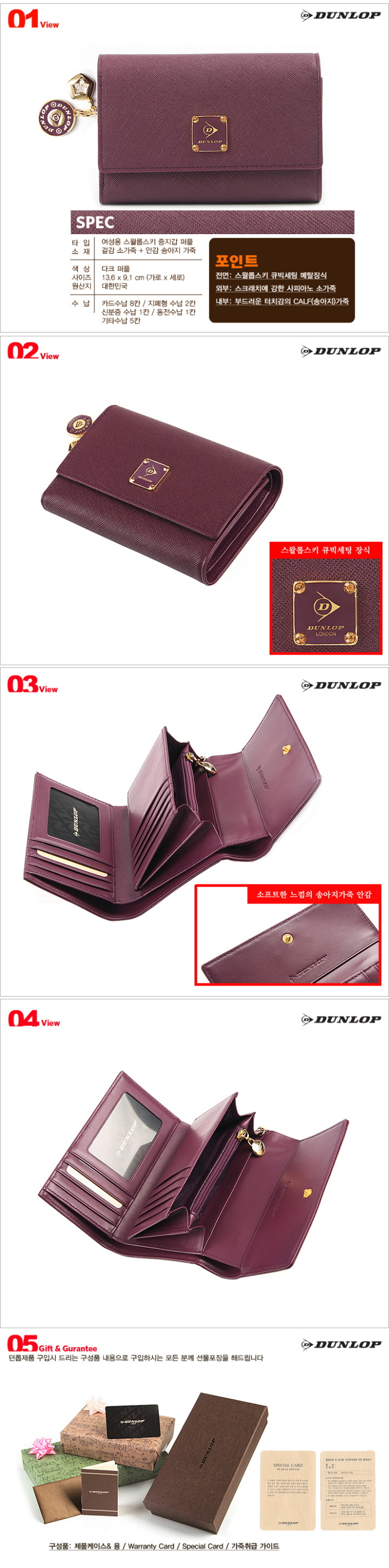 [DUNLOP]던롭 송아지가죽 중지갑 PURPLE