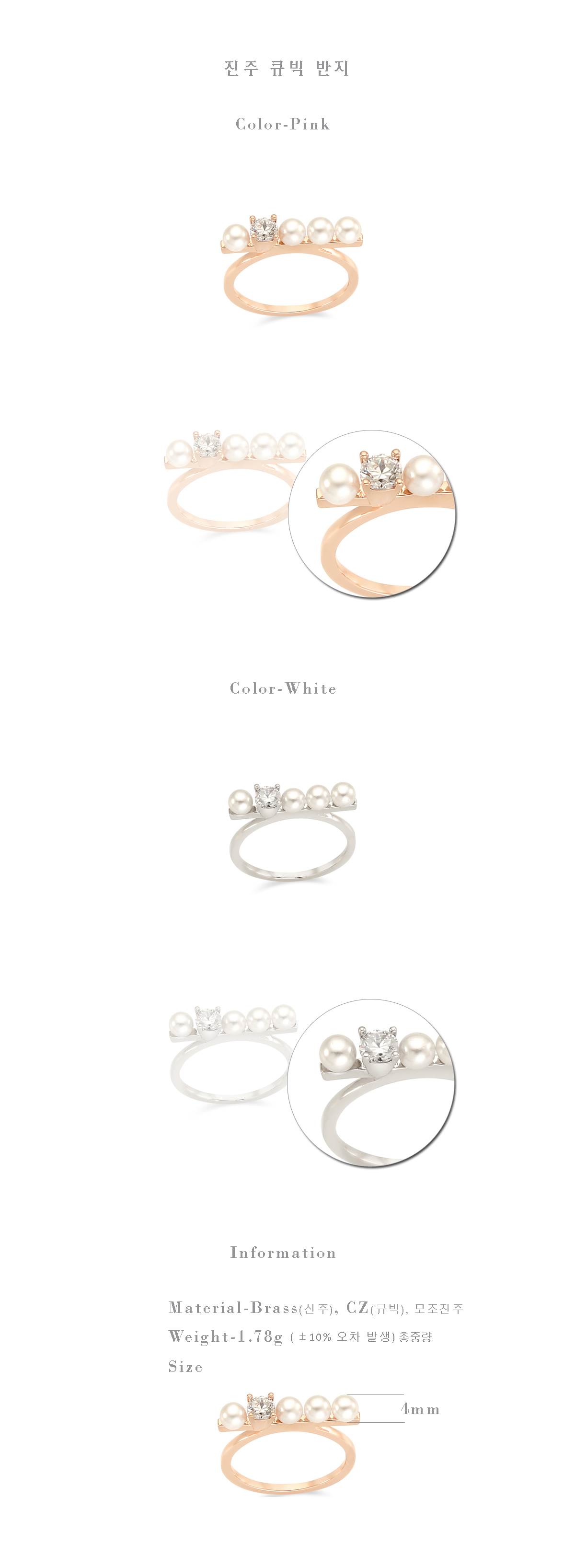 [미미쥬얼리]진주큐빅반지 RBK05- 0010