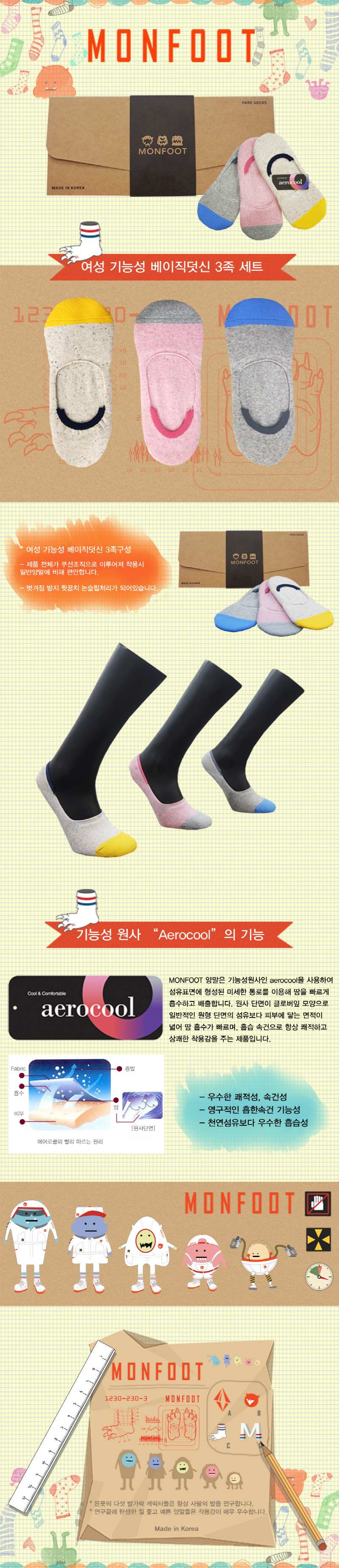 [MONFOOT]여성 기능성 베이직덧신 3족세트