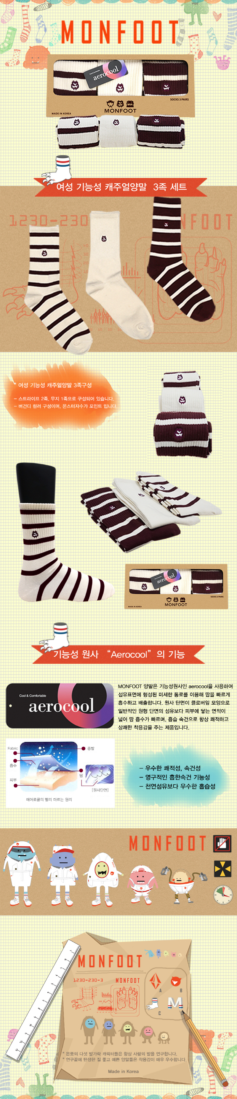 [MONFOOT]여성 기능성 캐주얼 양말 3족세트