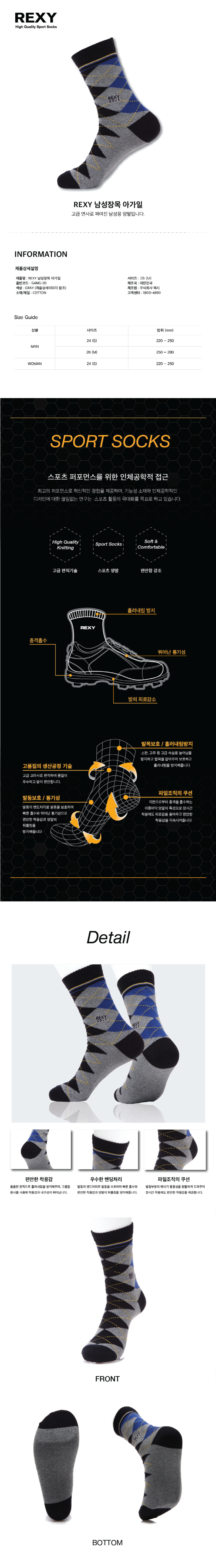 [REXY]렉시 스포츠 남성장목 아가일 그레이