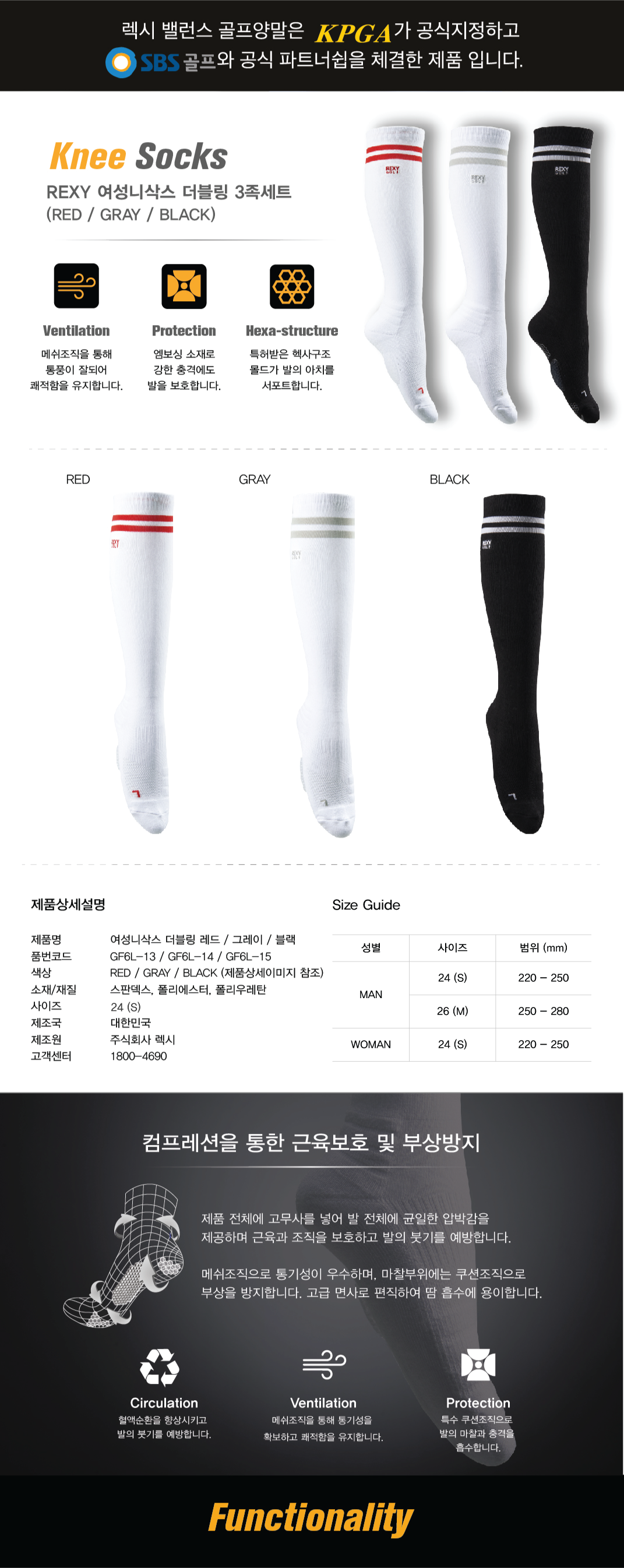 [REXY]렉시 골프 여성니삭스 더블링 3족세트