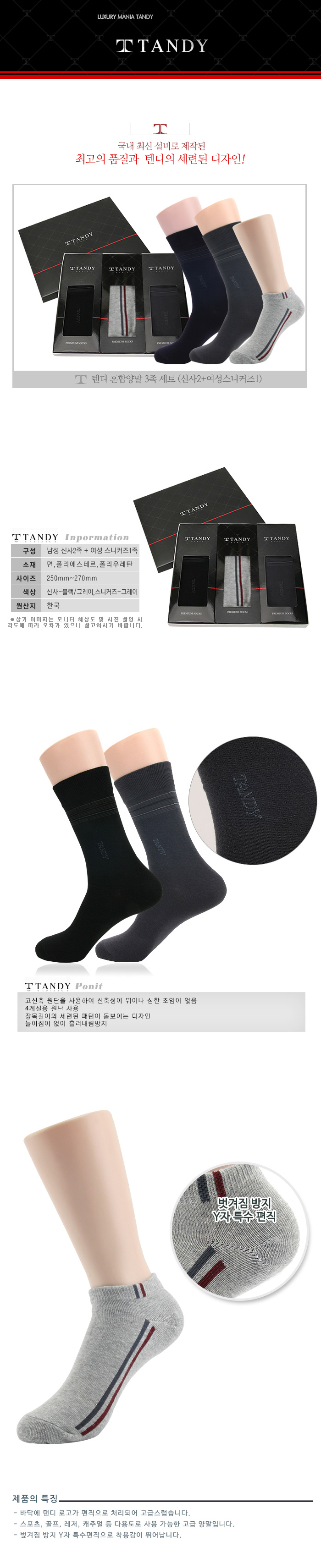 [TANDY]탠디 남녀혼합양말 3족세트 (신사2+여성스니커즈1)