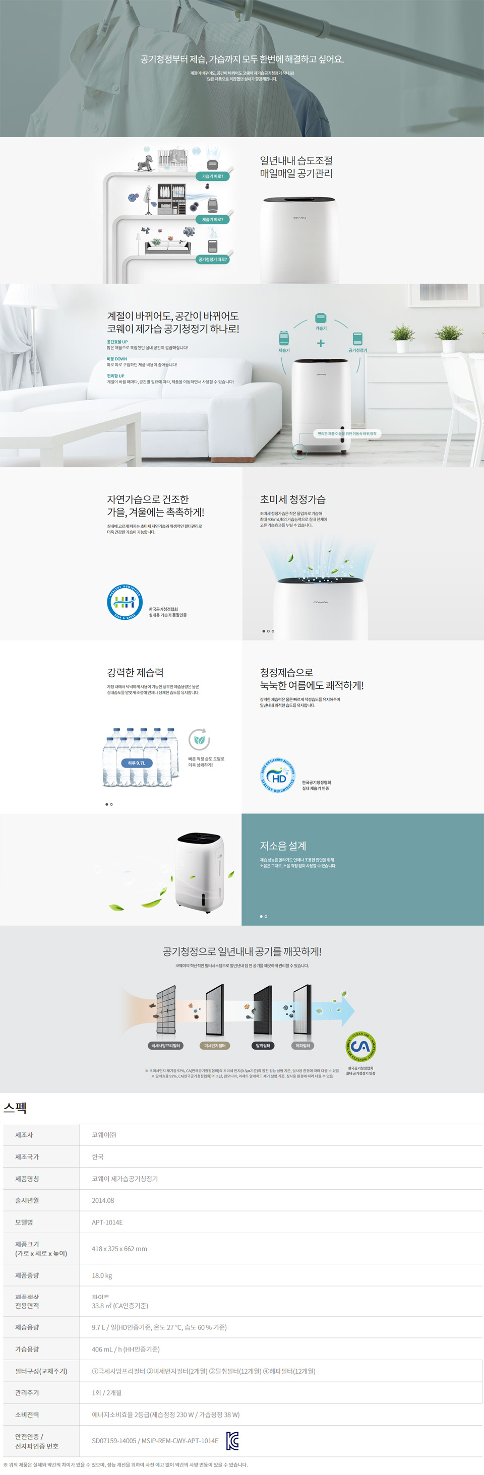 공기청정부터 제습,가습까지 모두 한번에 초미세 청정가습