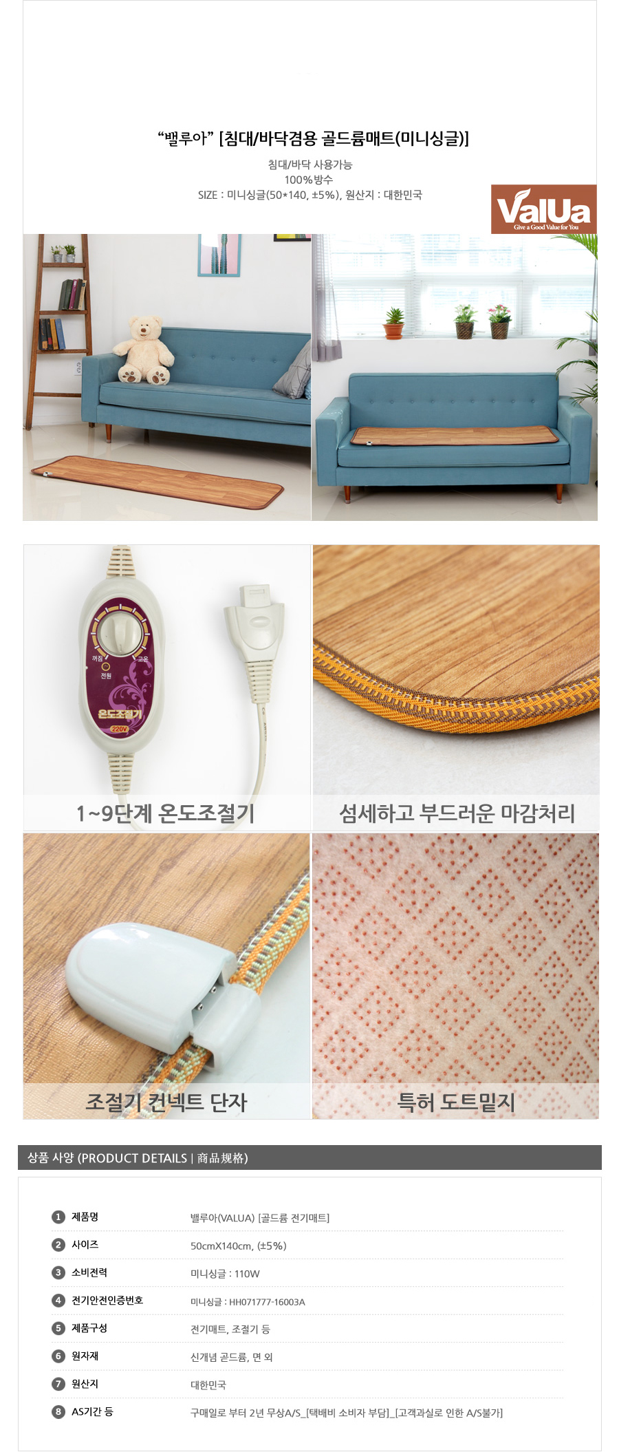 밸루아 골드륨 전기장판(미니싱글)
