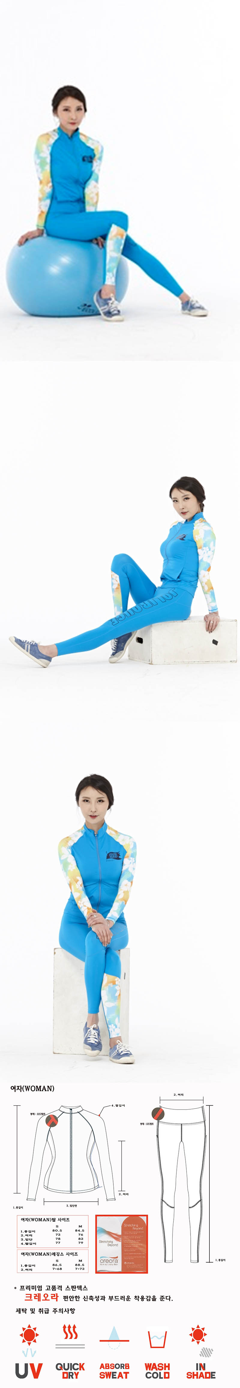 여성레쉬가드 집업세트 JRWSC-4 아쿠아블루 / 트레이닝복 요가복 집업
