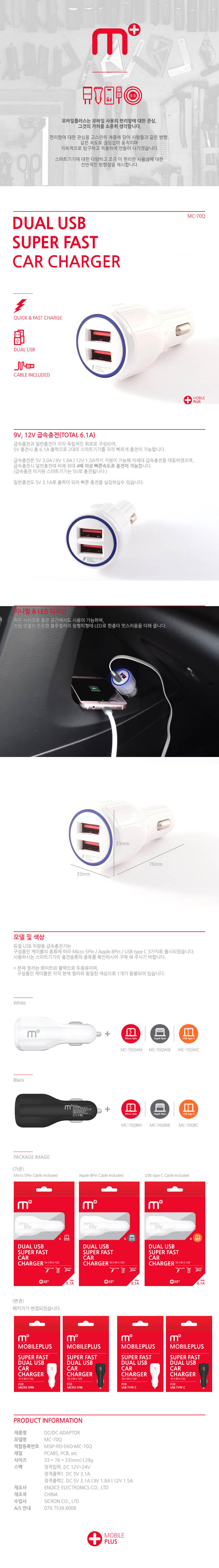 MPLUS M+ 듀얼 USB 차량용 퀵차지 충전기 (6A) MC-70Q