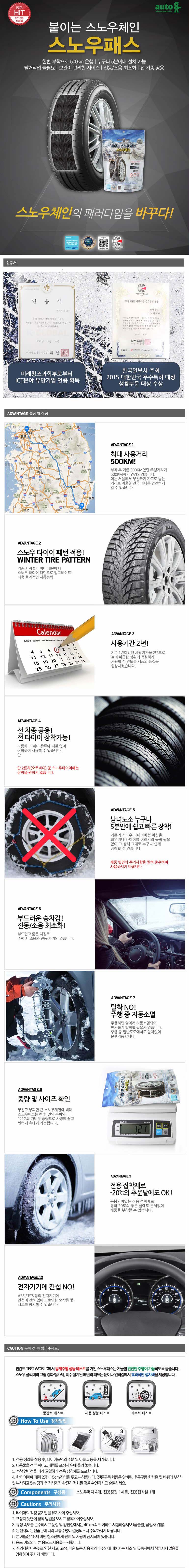 패치형(접착식)일회용 스노우체인 한번 부착으로 500Km운행가능 보관이 편리한 사이즈 누구나 손쉬운 설치 5분 장착OK